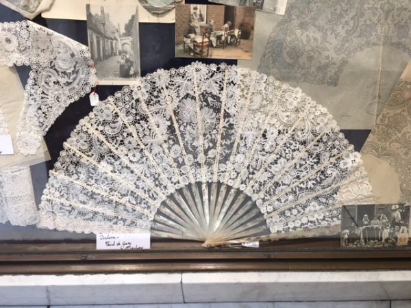 Hoy en día, cuando uno se pasea por Brujas puede ver numerosas tiendas con encajes para vender, una gran parte encajes mecánicos pero en todos los escaparates encontramos maravillas de siglos pasados y hechas a mano. Y ademas, buscando un poco, algunas tiendas tienen pequeños museos apartados de la parte principal de la tienda y que hacen las delicias de las mas entendidas. Esto es el escaparate de una tienda que está en una calle de salida de la Grand Place.