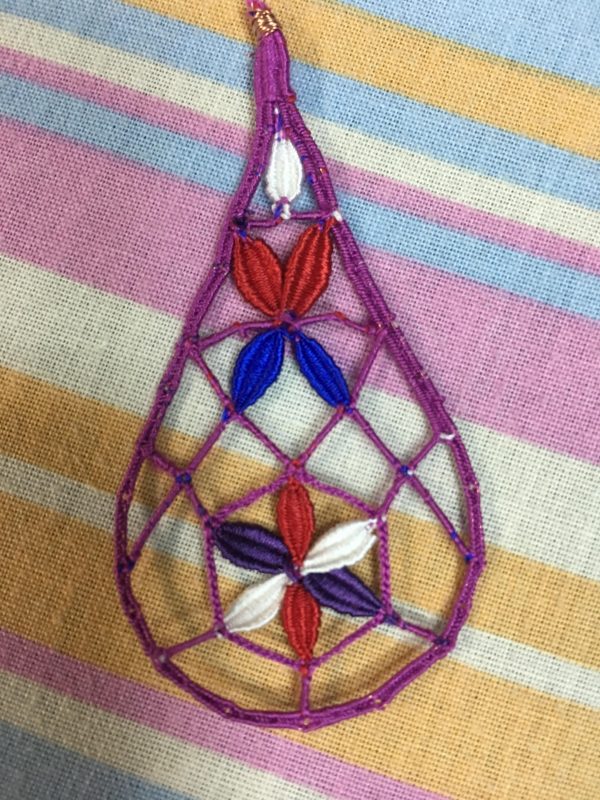 Lo primero, fui el último fin de semana a Pontevedra a enseñarles un poco de la policroma para que sepan hacer los colgantes. Han sido dos días fantásticos, unas alumnas nuevas fabulosas, una acogida y organización  por parte de Esperanza y la Asociación de Palilleiras A fieitiña inmejorable, nuevas amigas y unas empanadas de infarto (además de queso, membrillo… en fin, que más puedo decir)